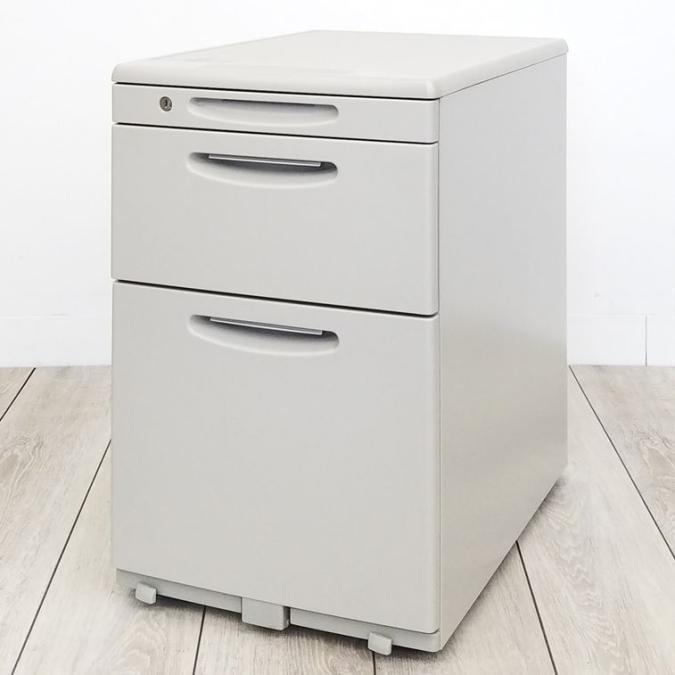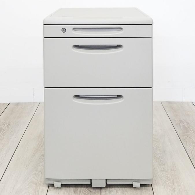 【大人気オカムラ製3段デスクワゴン!天板の把手とキャスターで移動がらくらく!デスク下に置いて収納力アップ!】■オカムラ(okamura)製 SDシリーズ 3段ワゴン デスクインワゴン H610㎜ ■ニューグレー ■シリンダー錠