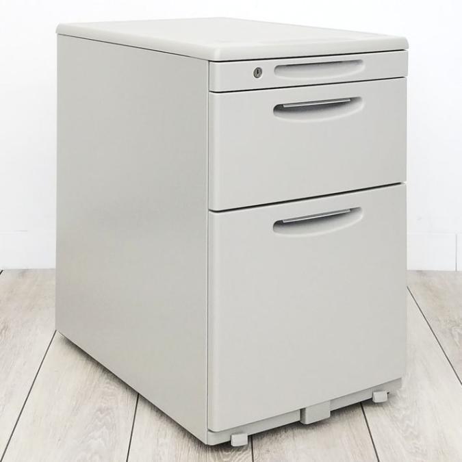 【天板の把手とキャスターで移動がらくらく!シンプルでスタンダードな3段ワゴン!】■オカムラ(okamura)製 SDシリーズ 3段ワゴン デスクインワゴン H610㎜ ■1段目引き出し浅め ■ニューグレー ■シリンダー錠【2506】弊社使用欄【A01019125】