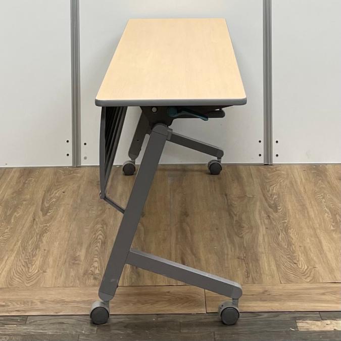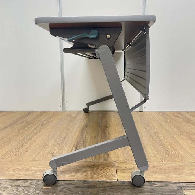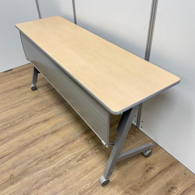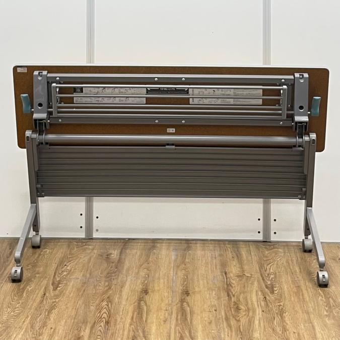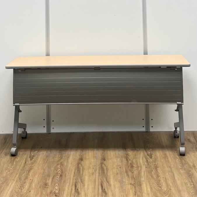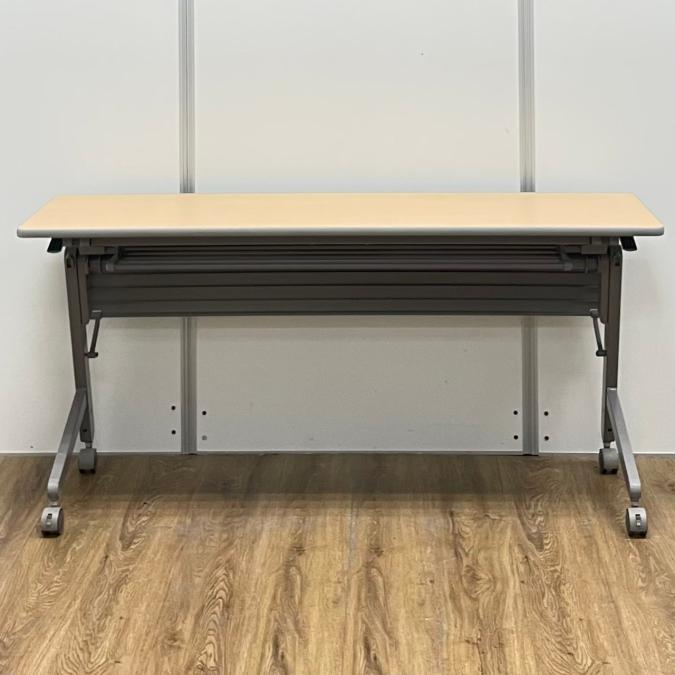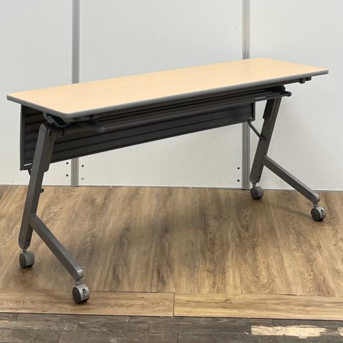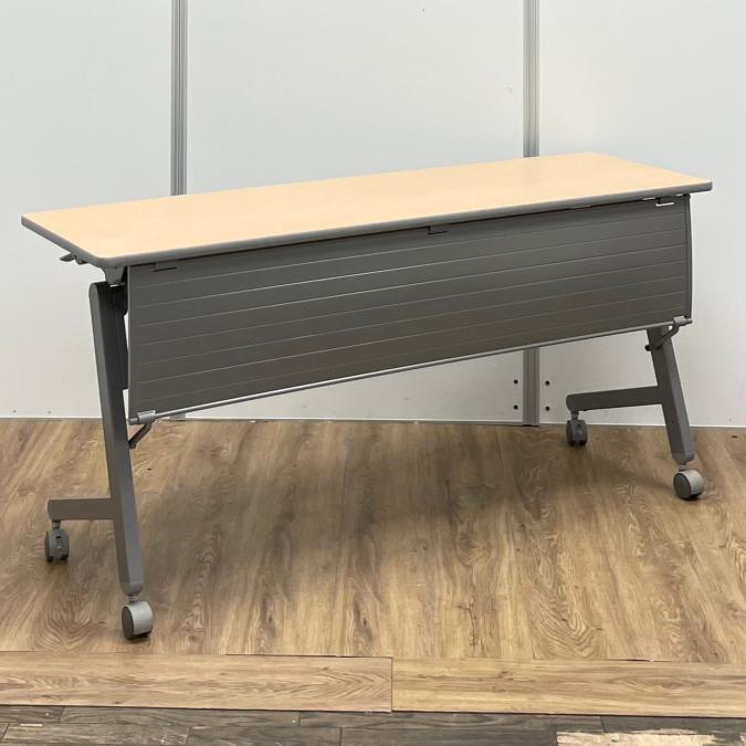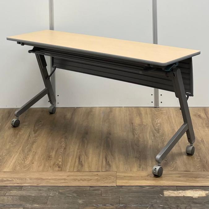 【商品入替のため、残り1台限り】イトーキ製 HMシリーズ 柔らかい木目調天板の色合いがオフィスを明るく彩る! 不要な時は畳んでスペース節約! W1500/D450 幕板付き サイドスタックテーブル!!- 京都東寺店