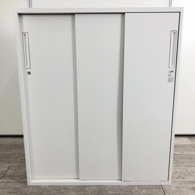 3枚引き戸書庫 コクヨ エディア 鍵付き(シリンダー錠) 天板付き 清潔感のあるホワイトキャビネット 導線を邪魔しないスライド式の扉