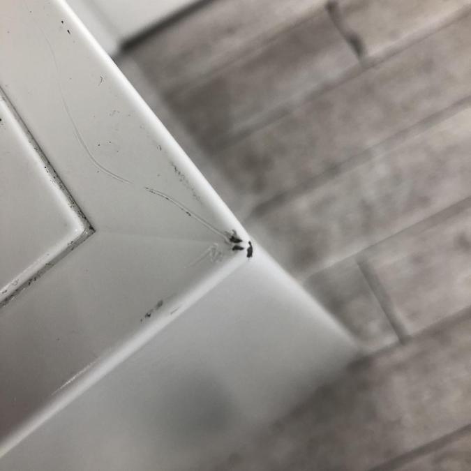 - 目立つ箇所複数あり深い傷・凹みが商品全体にある。(例、天板、正面、背部、サイド部分にある。)