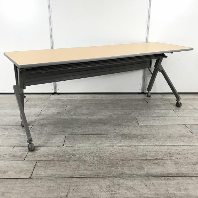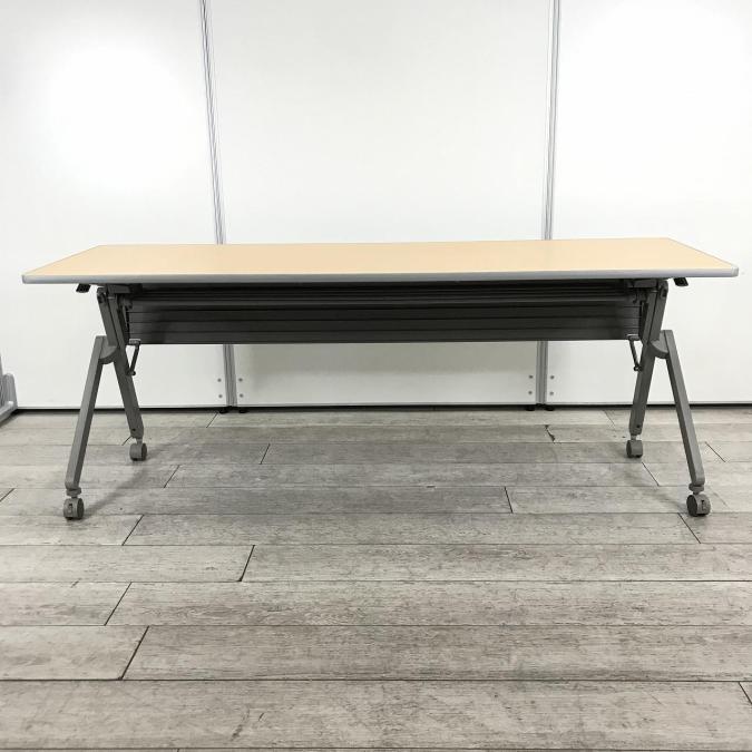 【2~3名様で使えるスタックテーブル入荷!キャスター付きで移動も楽々!】■ITOKI(イトーキ)製 サイドスタックテーブル ■幅1800×奥行600 ■幕板付き ■ナチュラル【天板跳ね上げ式でコンパクトに収納】- 神戸・三宮店