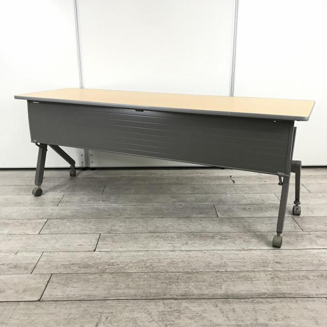 【2~3名様で使えるスタックテーブル入荷!キャスター付きで移動も楽々!】■ITOKI(イトーキ)製 サイドスタックテーブル ■幅1800×奥行600 ■幕板付き ■ナチュラル【天板跳ね上げ式でコンパクトに収納】- 在庫数