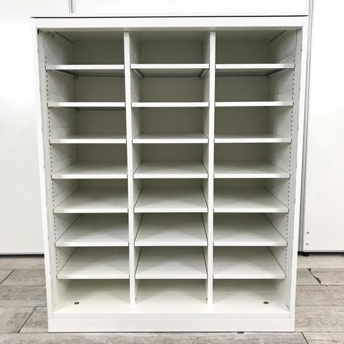オープンキャビネットが入荷!とりあえず収納したい、書類の出し入れの多い、常に見える形で収納したい、そんなお客様におすすめ! ■オカムラ/レクトライン/ホワイト ※元は両開き書庫のため扉を外した跡がございます。
