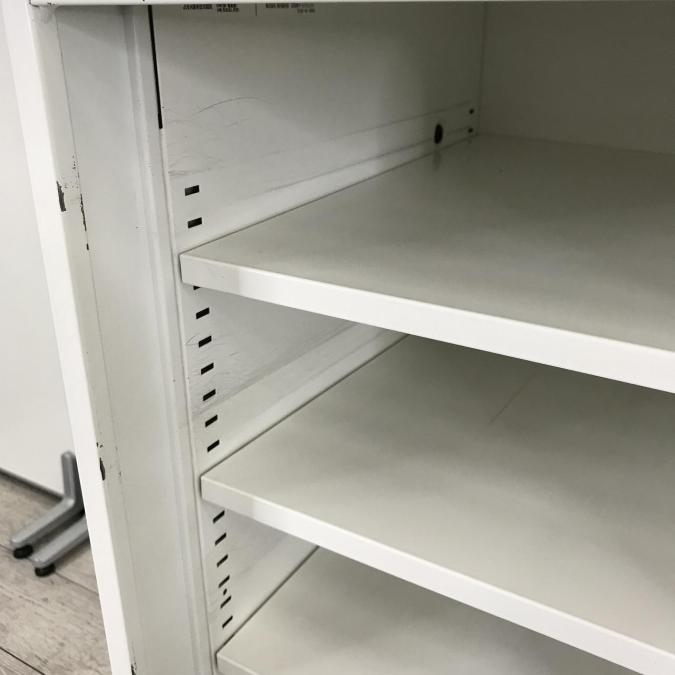 【オフィスの書類をスッキリ整理! 扉の無いタイプなので資料探しがラクラク!】■オカムラ(okamura)製 レクトライン(Rectline)シリーズ オープン書庫 ローキャビネット ■色:ホワイト ※扉外し商品のため外し跡がございます。