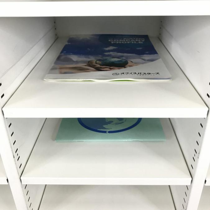 3列・8段の区切りがあり、カタログ置き、整理棚としても活躍致します。