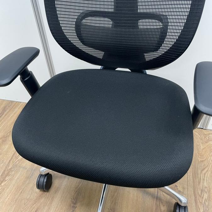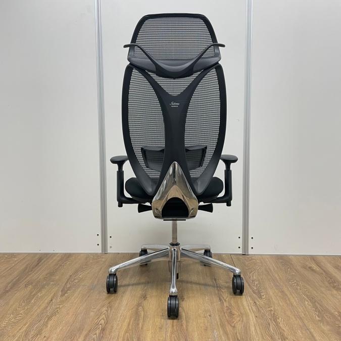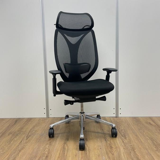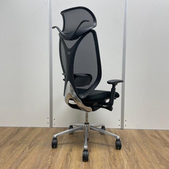 【レア・ヘッドレス付】【20年度製】オカムラ製 サブリナシリーズ 人気のブラックカラー ポリッシュ脚 ランバーサポート 前傾チルト 肘付きハイバックチェア!!※京都東寺店撮影現物※- 京都東寺店