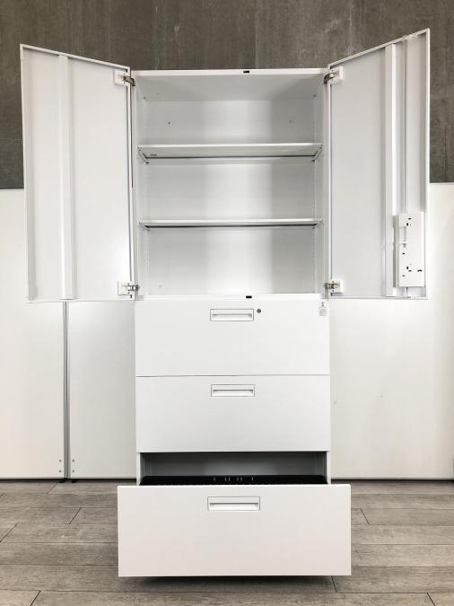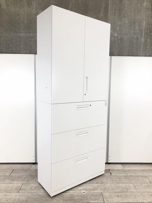 【収納量抜群の書庫セット!観音開き+引き出しタイプの人気の組み合わせ!】■コクヨ(KOKUYO)製 エディアシリーズ(EDIA) 両開き+3段ラテラル 書庫セット ハイキャビネット ■シリンダー錠 ■ホワイト