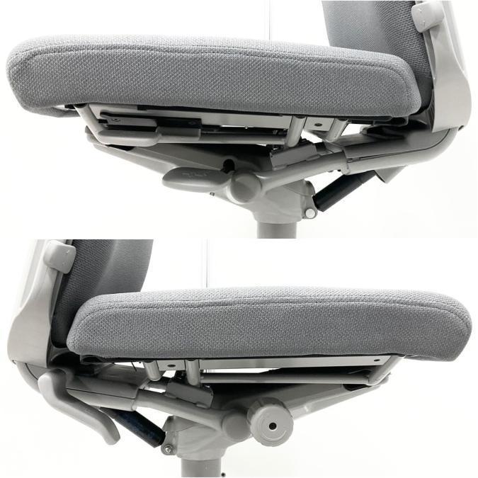 作業中の姿勢はもちろん、座ったまま背伸びをした時には、背もたれが倒れるだけでなく座面部分も連動して動く""アンクルチルトロッキング""機構で心地よく、オカムラの技術が光るチェアです。"