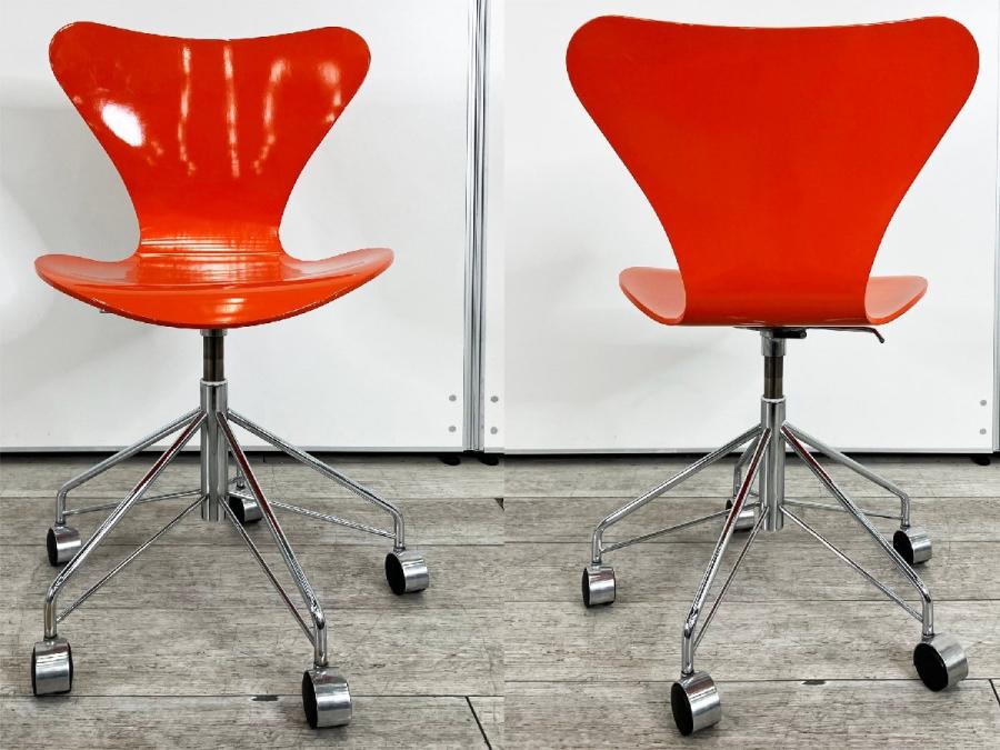 B)Fritz Hansen/フリッツハンセン セブンチェア キャスター付き回転ベース ラッカーオレンジ 北欧- デザイナーズ家具センター