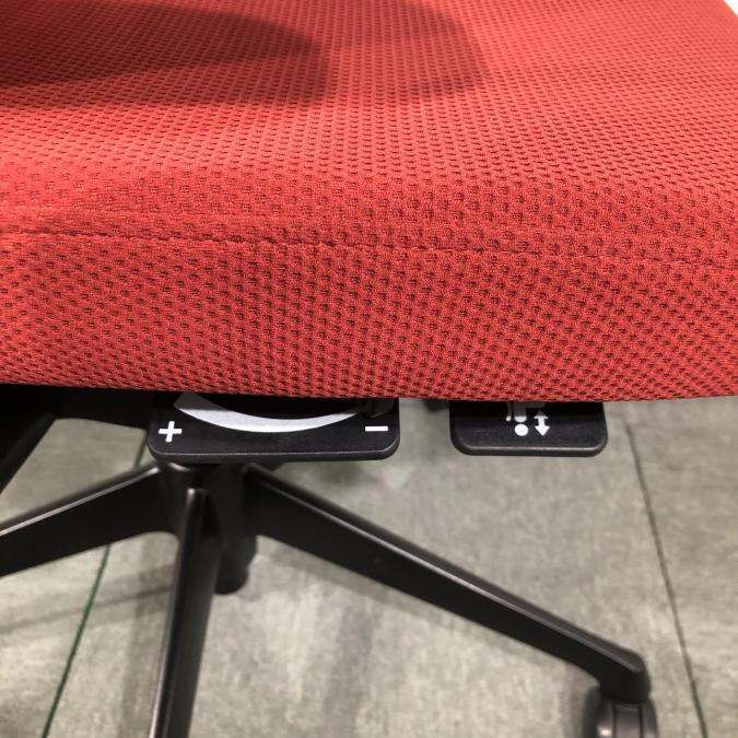 座面の高さや前後などの基本的な調整レバーが座面裏の前方に集約されており、姿勢を変えずに調節ができます。