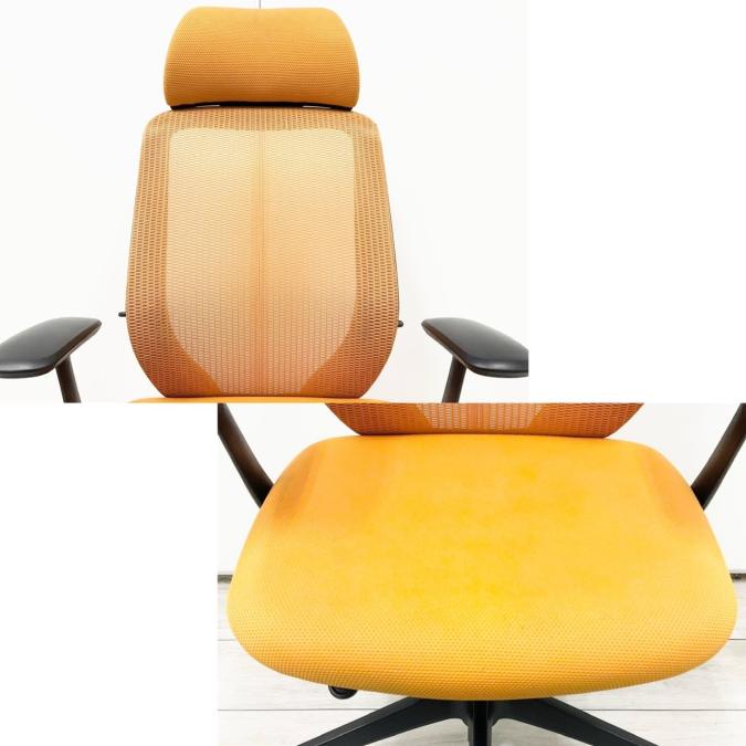 【前傾チルト機能付き】【オカムラ製品で最も人気を集める高機能メッシュチェア!】■オカムラ(okamura)製 シルフィ(Sylphy)チェア 肘付き ハイバック 背面メッシュ ■可動肘・ハンガー付き ■オレンジ×ブラックシェル 高級チェア テレワーク ★ K10