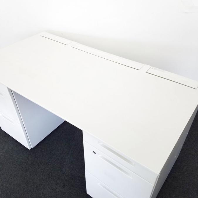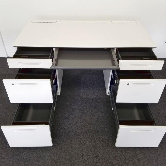 【T11】【商品入替のため、残り4台限り】コクヨ製 アイエス(IS) ホワイト 両袖 デスク W1400xD700xH720サイズ シリンダー 収納スペース充実! 机上をスッキリ整理! 幅広いワークスペースで上長席にもオススメ! W1400両袖机!!