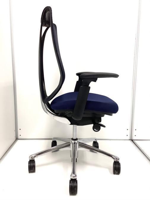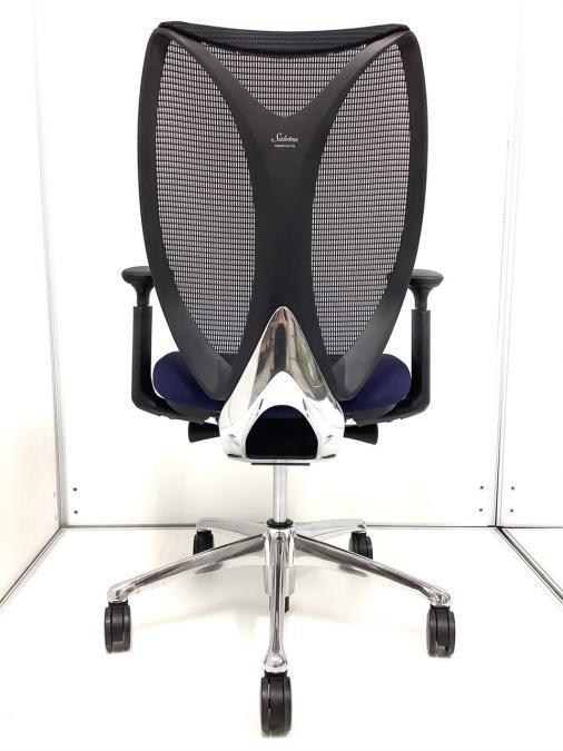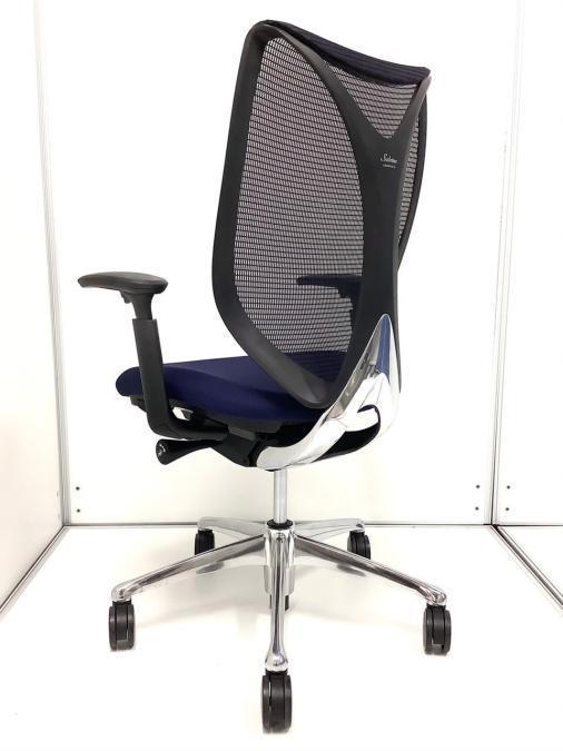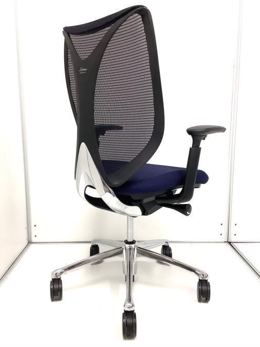 【在庫入れ替え】【訳アリ品】【前傾チルト付!流れるような美しいフォルムの最高級メッシュチェア!】■オカムラ(okamura)製 Sabrina(サブリナ) ハイバック 肘付き ■可動肘 ■背面メッシュ:アクアブルー 座面:ブルー ホワイトフレーム