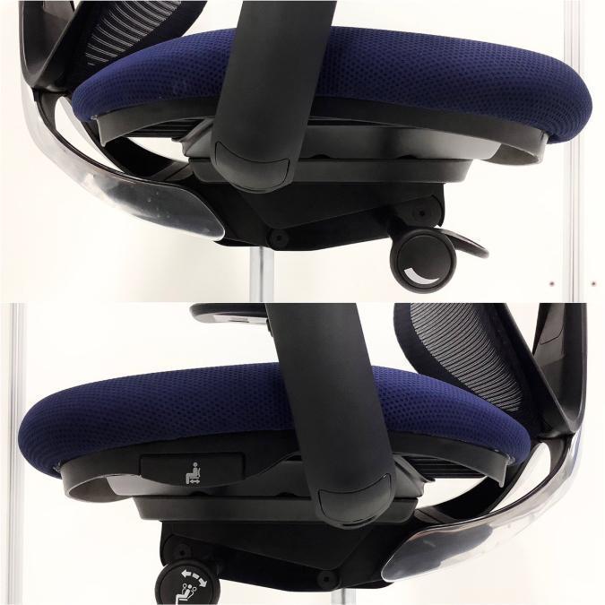 座面の奥行きは、座面左下のレバーで前後50mmスライド調節可能が可能です。