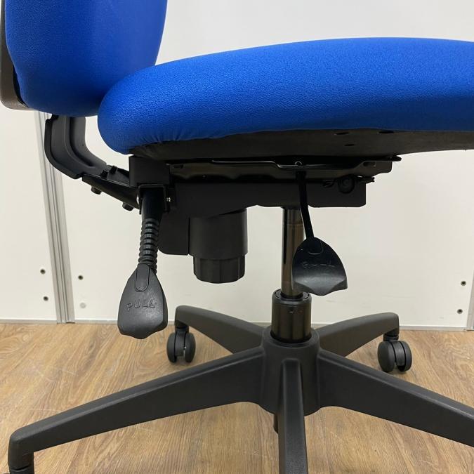 【訳アリ品】スチールケース製 アプトシリーズ ブルー オフィスの執務室や事務所などにおすすめ! 座り心地に配慮した厚めのクッションが好評! 肘無しローバックチェア!!