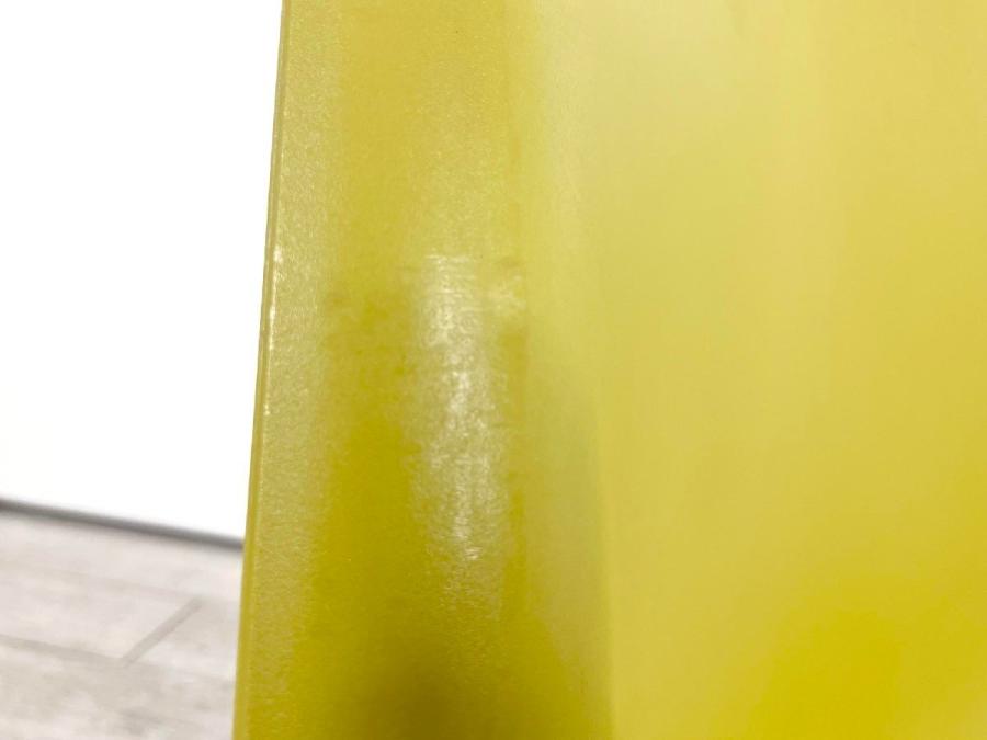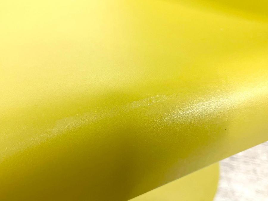 - かなり強い濃い黄ばみ・変色が商品全体にある。(例、座面・背もたれ、脚部等にある。)