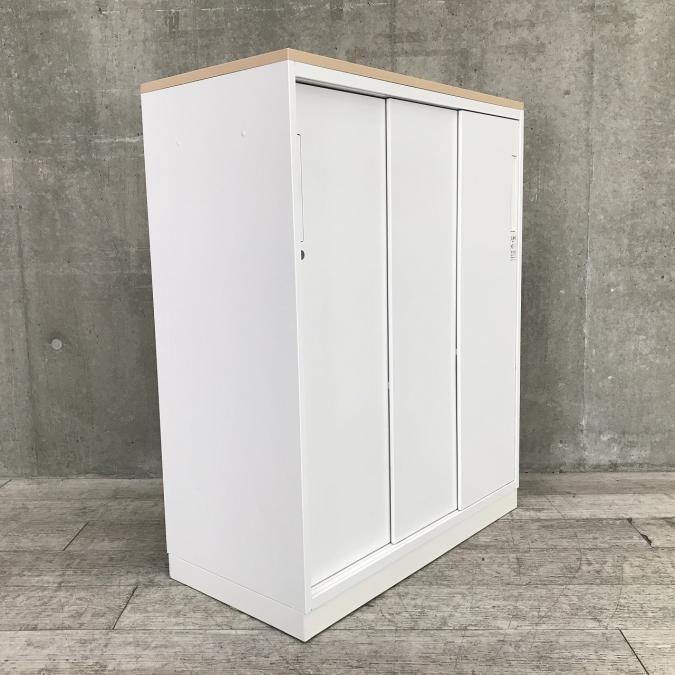 引き戸3枚扉書庫 コクヨ エディア ホワイト 木目天板付き 鍵付き シリンダー錠 介護・福祉関連の事業所様からご要望の多い商品- 名古屋千種店