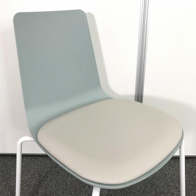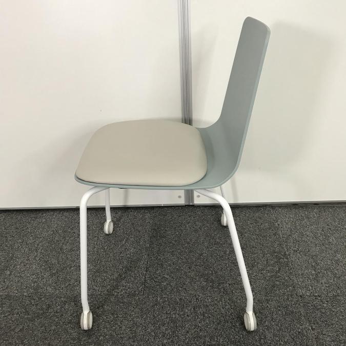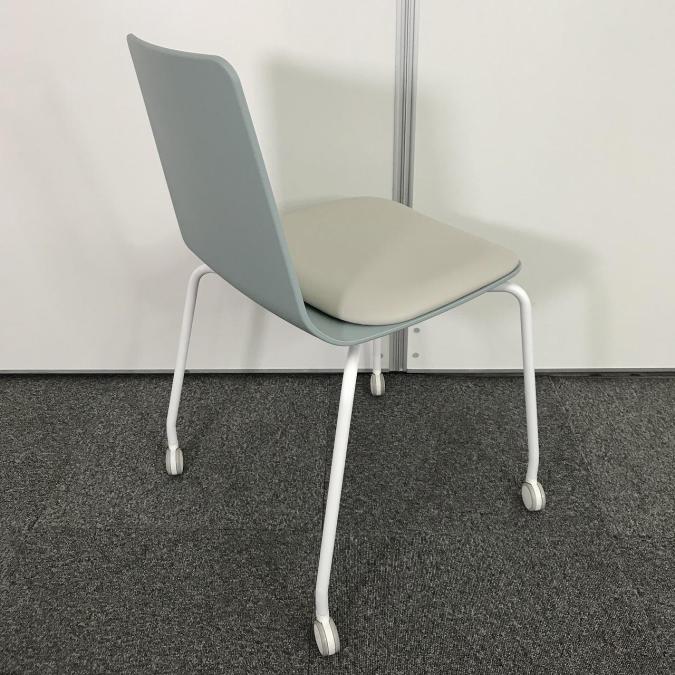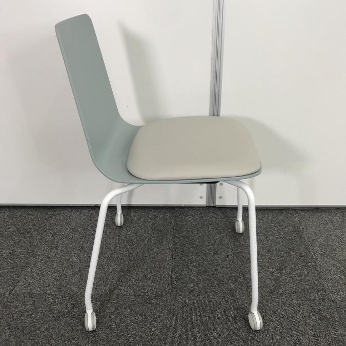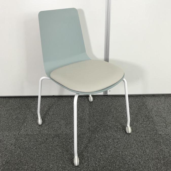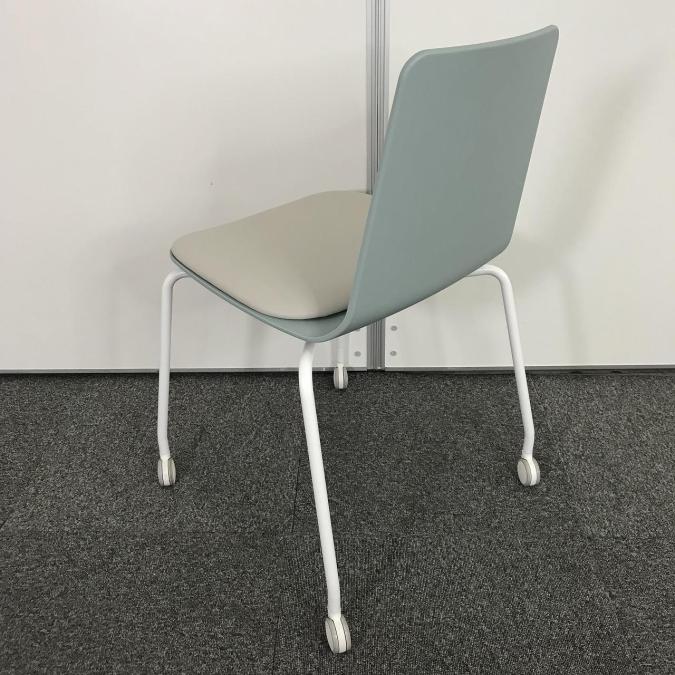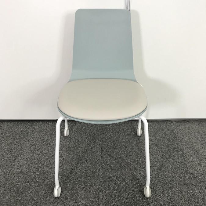 【リフレッシュスペースにおすすめ!淡く爽やかな雰囲気を醸し出すカフェチェア!重ねて収納可能!】■コクヨ (KOKUYO) ミケット(Mycket) ■スタッキングチェア ミーティング カフェ ■背:ホワイトターコイズ/座:ブライトグレー/フレーム:ホワイト ■キャスター付き- なんば日本橋店
