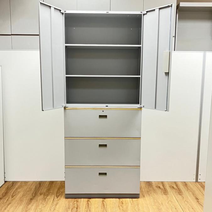【訳アリ品】イトーキ製 シンラインシリーズ グレーカラー 両開き書庫と3段ラテラル書庫のセット 上下書庫セット!!※中部共通在庫- 岐阜店