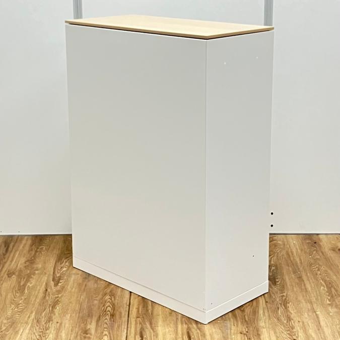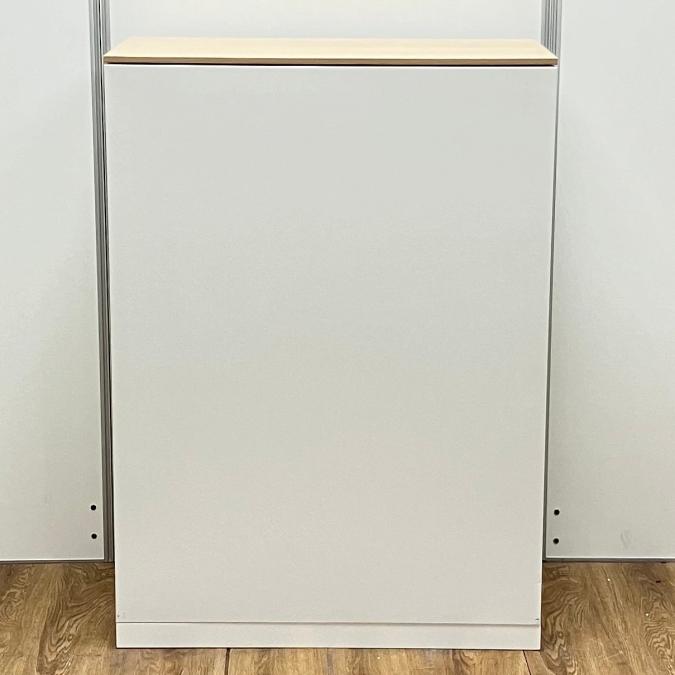 【オフィスの書類をスッキリ整理! 扉の無いタイプなので資料探しがラクラク!】■オカムラ(okamura)製 レクトライン(Rectline)シリーズ オープン書庫 ローキャビネット ■色:ホワイト ※扉外し商品のため外し跡がございます。