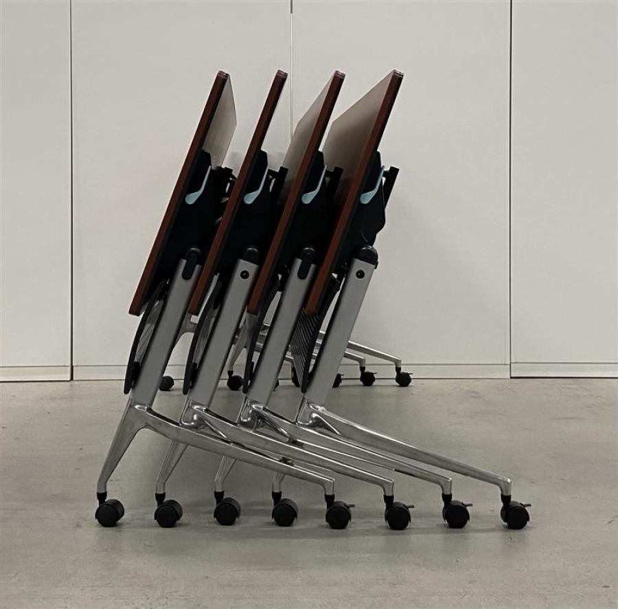 不要時にはテーブルを折りたたみ、同商品と平行に重ねられスペースの削減にも貢献致します。