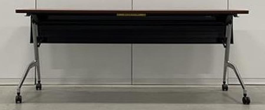 【シックなカラーリング!】使わない時には畳めて収納可能! 内田洋行/LEGARE キャスター付 W1800 D450 中古 収納 会議 セミナー ブラウン 木目- 東大阪店