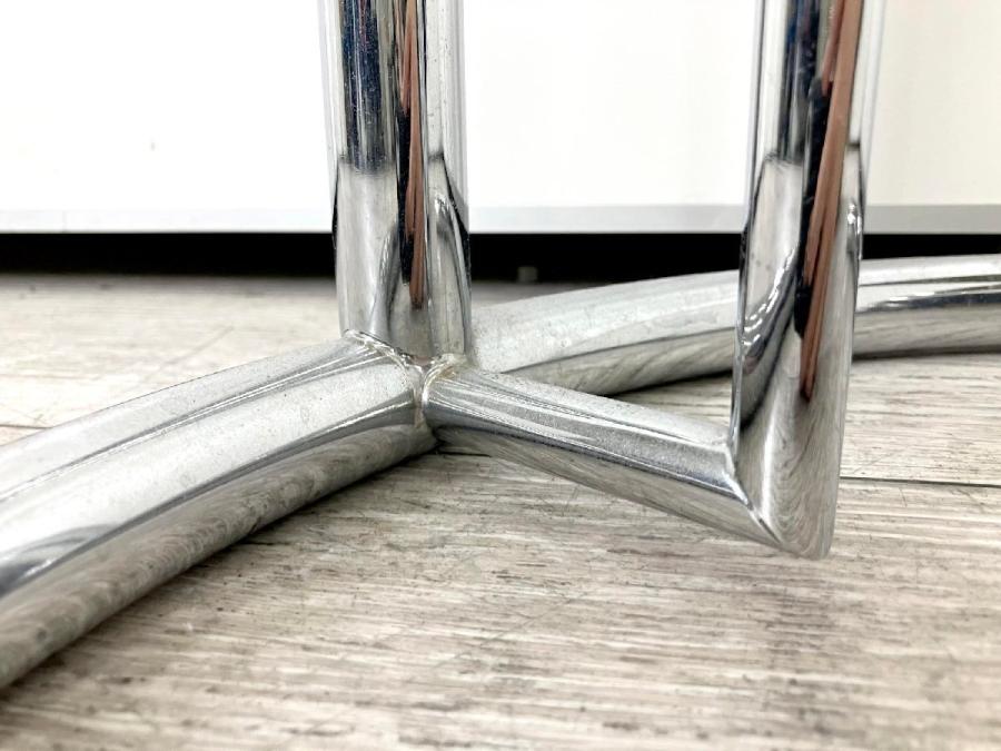 シンプルなデザインで、機能性にこだわった、このサイドテーブル。支持脚が端にあることで、ベッドでの朝食用のテーブルとしても活用できます。また、脚部が割れていることによって、ソファやベッドの脚も邪魔にならずに使うことができます。高さも自由に変えられる可変性が流麗なファルムにまとめられた完成度の高いサイドテーブルです。