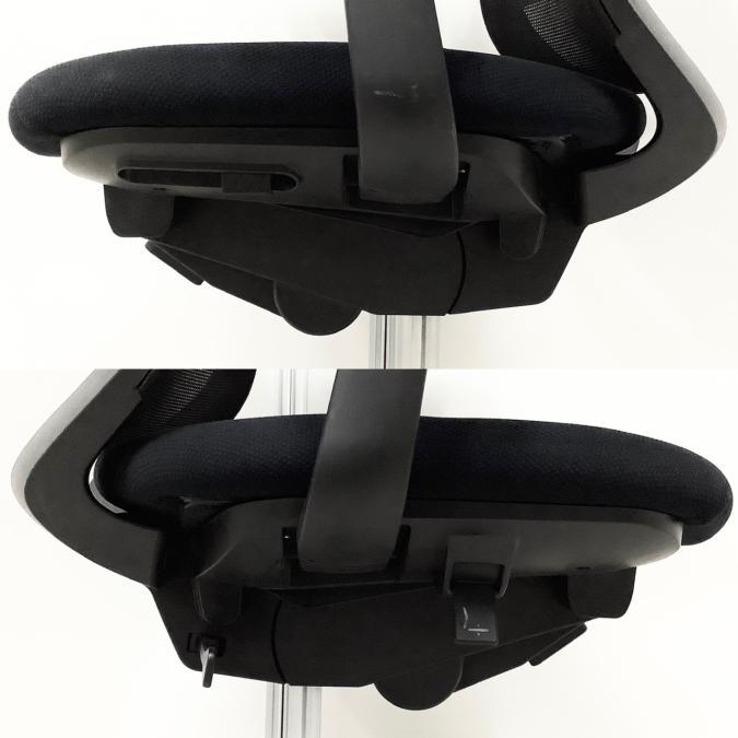 - 座面の高さは上下に90㎜、奥行は前後に50㎜調節可能。さらに骨盤を支えるポスチャーシート採用で着座時の前滑りを防ぎます。