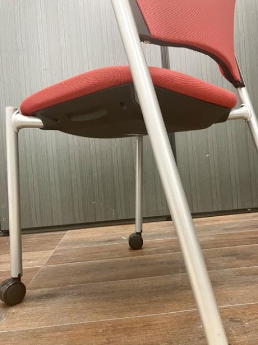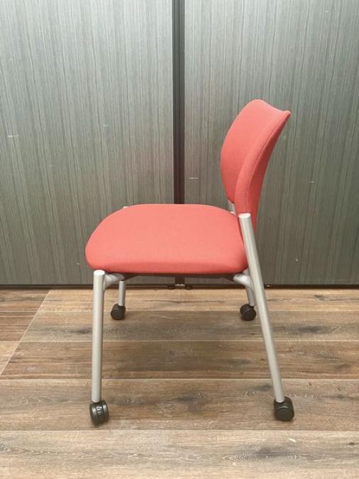 【1脚限り】オカムラ製 スタッキングチェア キャスター付き 8147シリーズ レッド- 在庫数
