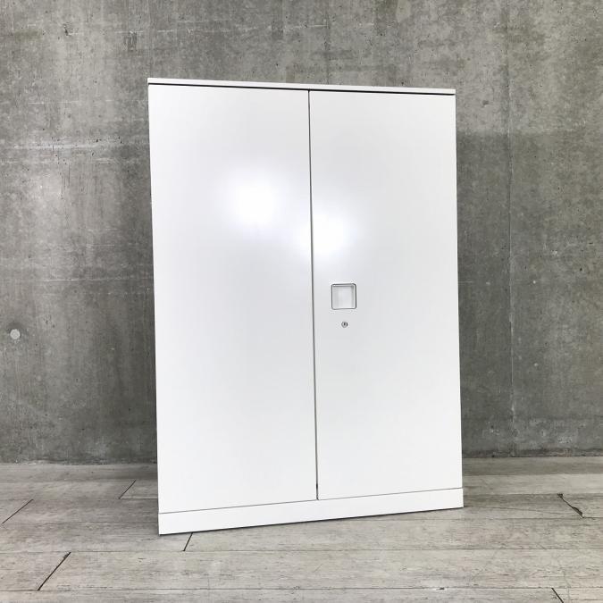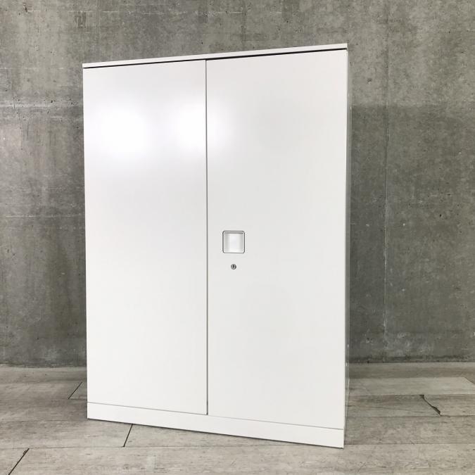 【オフィスの書類をスッキリ整理!取っ手がどの方向からでも開くマルチハンドルが人気!】■オカムラ(okamura)製 レクトラインシリーズ ローキャビネット 両開き書庫 H1250㎜ ■ホワイト ■シリンダー錠