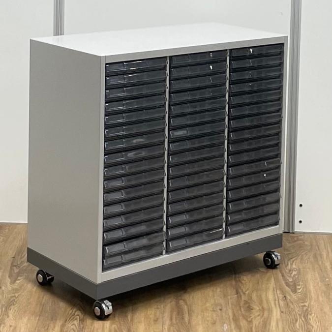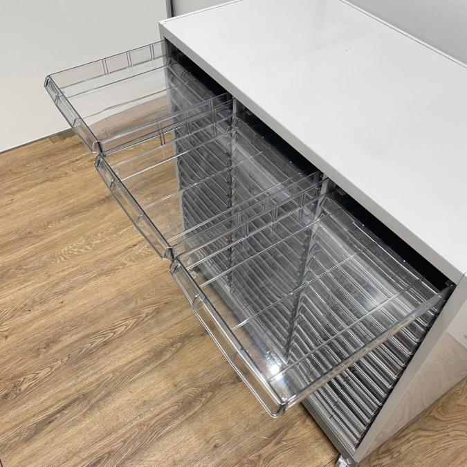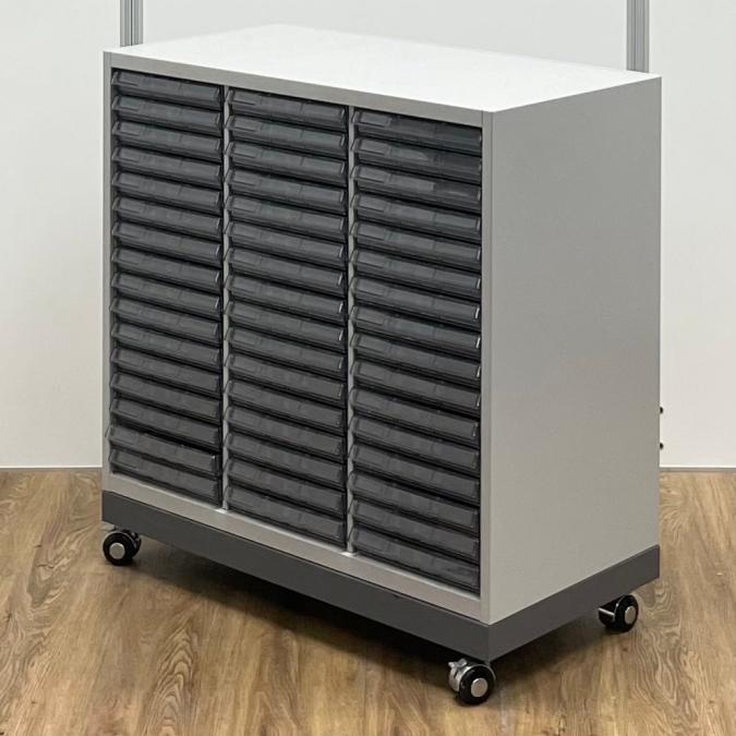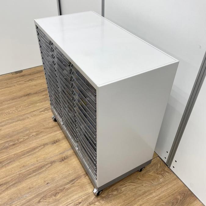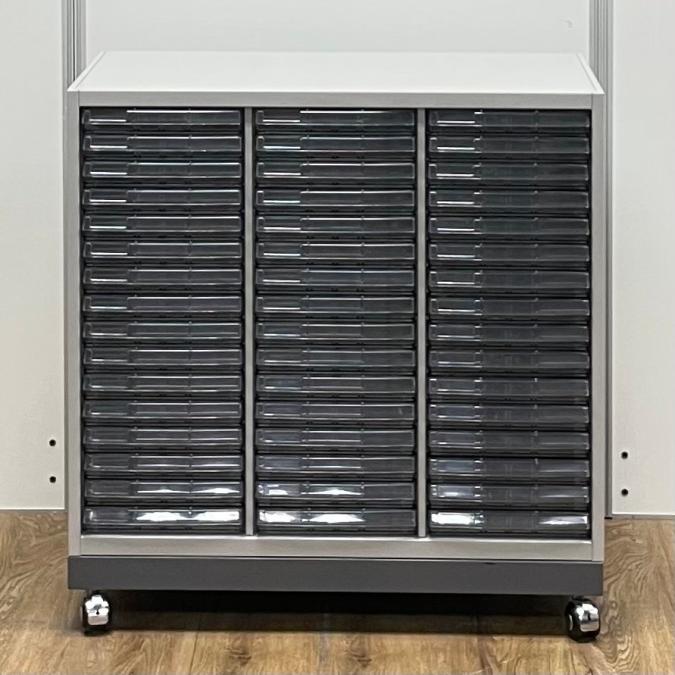 【レア:キャスター付き】 3列x16段 深浅型 グレー クリスタルトレイキャビネット!!※京都東寺店撮影現物※- 京都東寺店