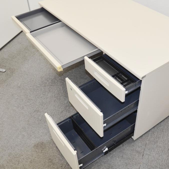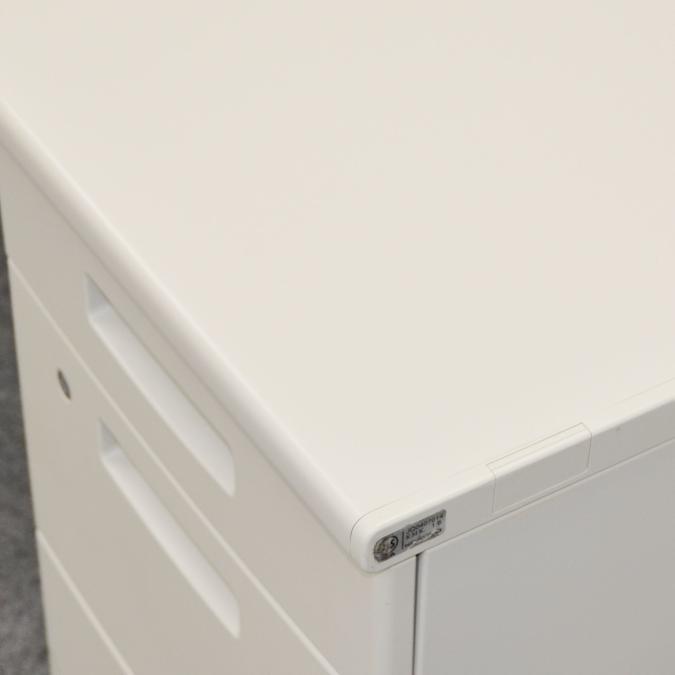明るいアイボリーよりのニューグレー色で非常に人気のデスクになります。