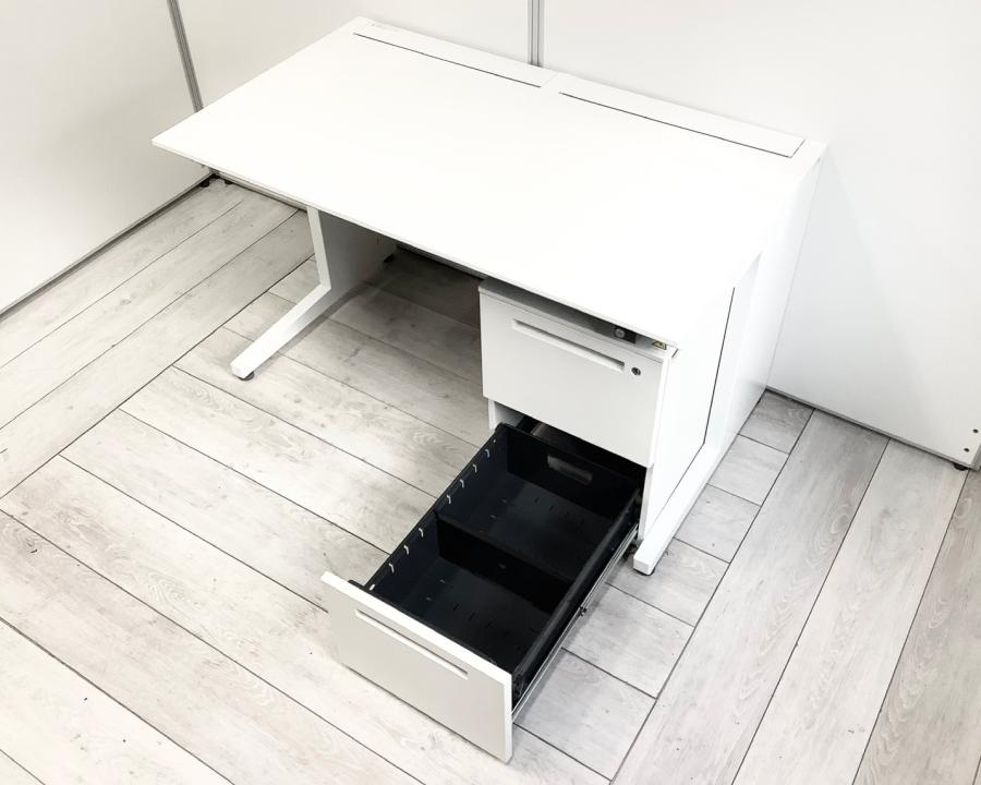 横幅1200㎜サイズのワゴン分離型の片袖セット! ■デスク:コクヨ/iSシリーズ/ホワイト ※ワゴンは在庫状況によって変動致します。【入れ替えセール品】- つくば店