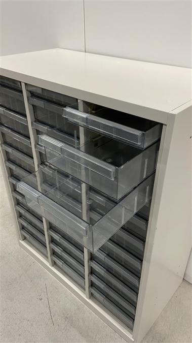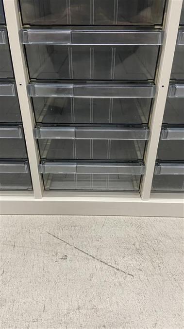- 一部不具合ありそ引出の開閉不可、施錠不可、棚板無しといったの書庫の本来の効用を果たすための機能以外の一部が使用不可(例、扉、引出の開閉がしづらいなどがある。 )
