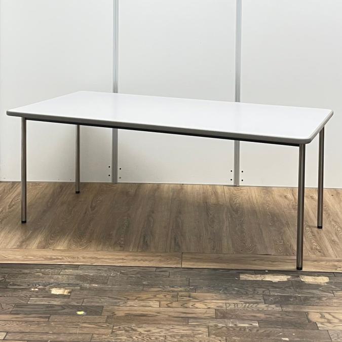 【商品入替のため、1台限り】【訳あり品:天板にカッターキズあり】オカムラ製 ニューグレーカラー W1800/D900 4本脚 ミーティングテーブル!!- 京都東寺店