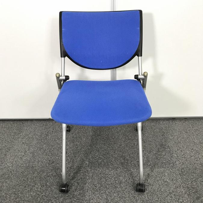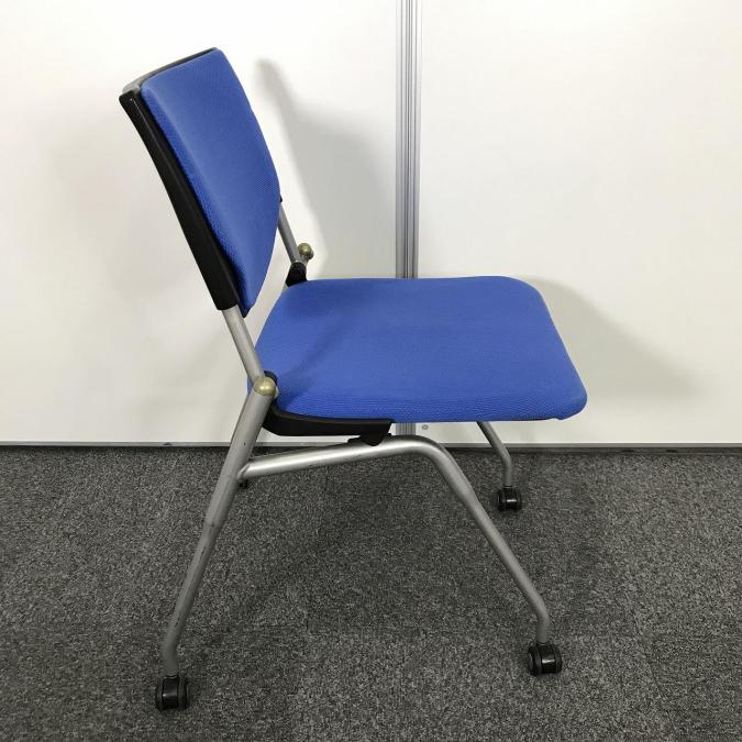 【会議室にピッタリ!コンパクト設計で収納がしやすい!】■オカムラ プロスタックシリーズ ネスティングチェア ミディアムブルー ■フレキシブルに使えるキャスター付!【在庫入替セール品!(本在庫限定価格)】