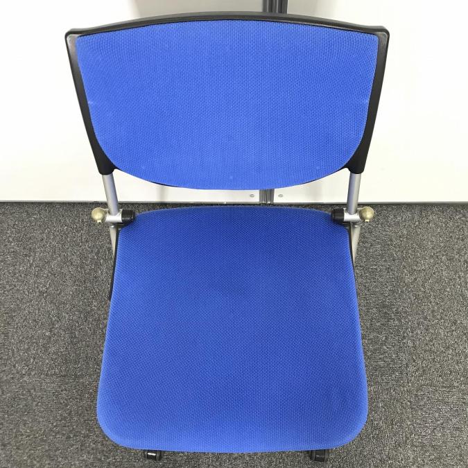 【座面使用感あり】オカムラ製 プロスタック プレーンタイプ 背面樹脂メッシュ ブルー×ブラック コンパクトに積み重ねて収納 ネスティングチェア!!