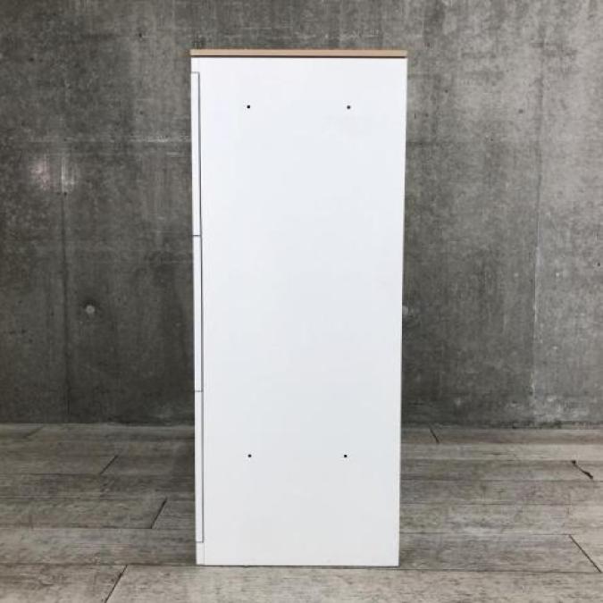 オカムラ レクトライン 3段ラテラル書庫 ホワイト天板 シリンダー錠 鍵付き ※取っ手部分に若干日焼けあり