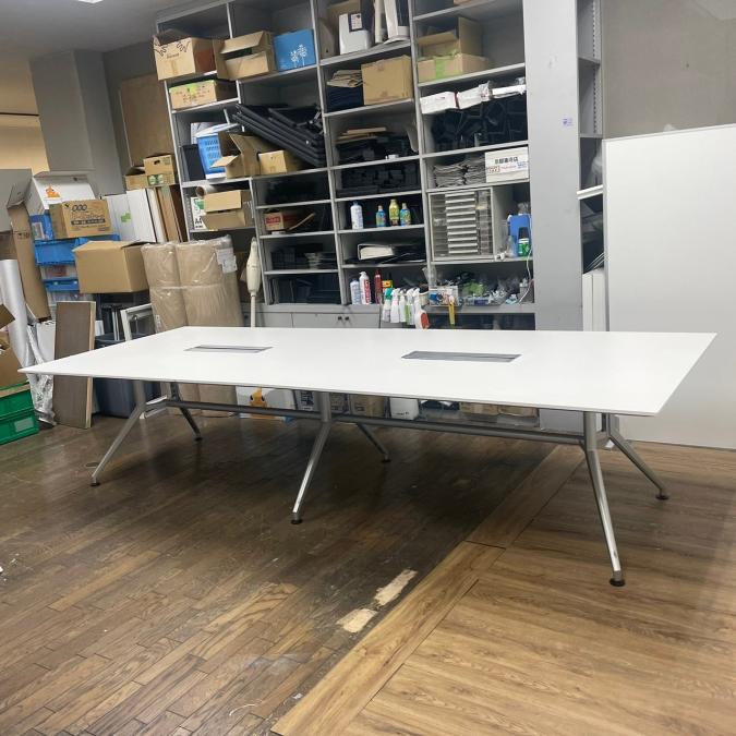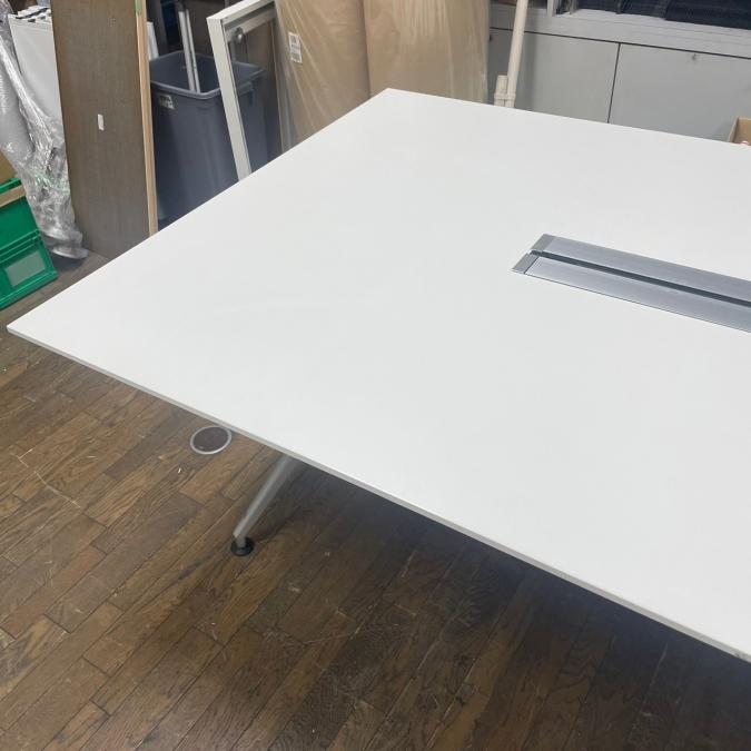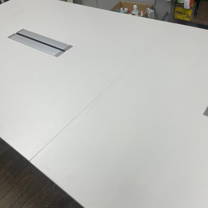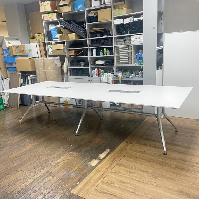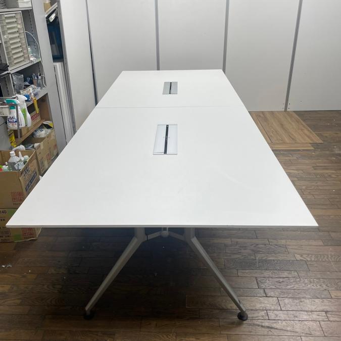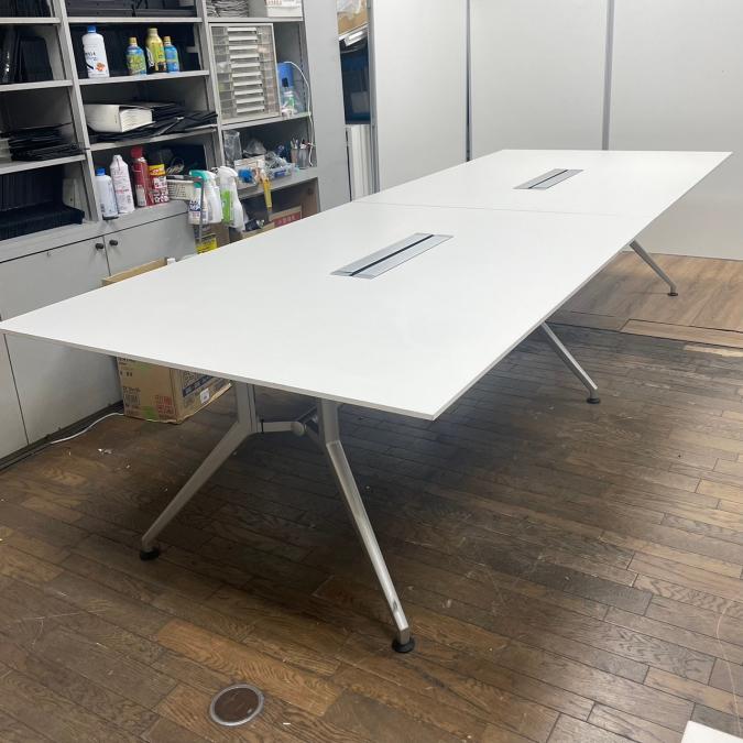 【商品入替のため、現品限り】イトーキ製 DDシリーズ ホワイトカラー シルバー脚 配線カバー W3200サイズ 2枚天板 ミーティングテーブル!!- 京都東寺店