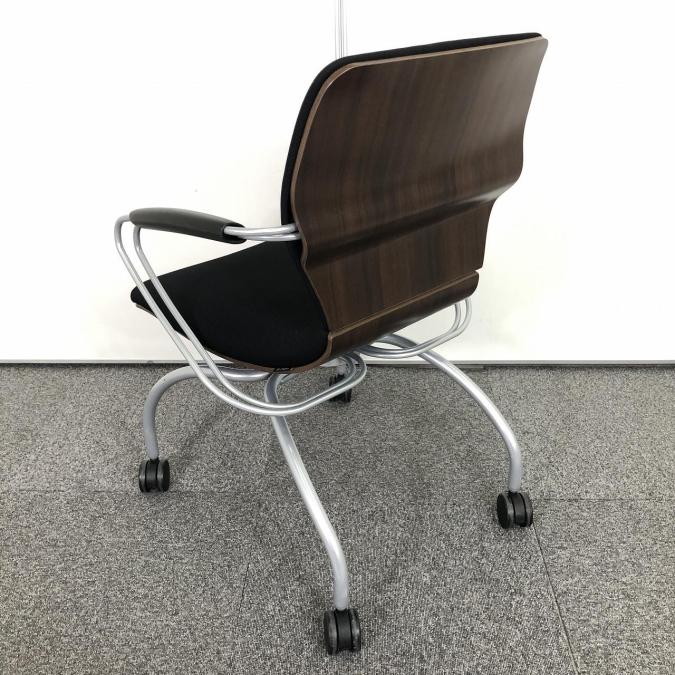 【木製シェルを用いた独創的なフォルム!】■イトーキ(ITOKI)製 シンタ(SINTA)シリーズ ミーティングチェア 肘付 ブラック【在庫入替セール品!(本在庫限定価格)】- 川崎店