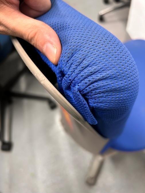 もう一つは、オカムラ社独自の""異硬度クッション""が座面に採用されていることです。これは座面が位置により異なる硬さのウレタンでできており、前方は腿裏を圧迫しないようソフトに、後方はしっかりと体重を支えるために少し硬めに作られています。クッション性とホールド感の両立により、長時間の作業での疲れを軽減してくれます。"