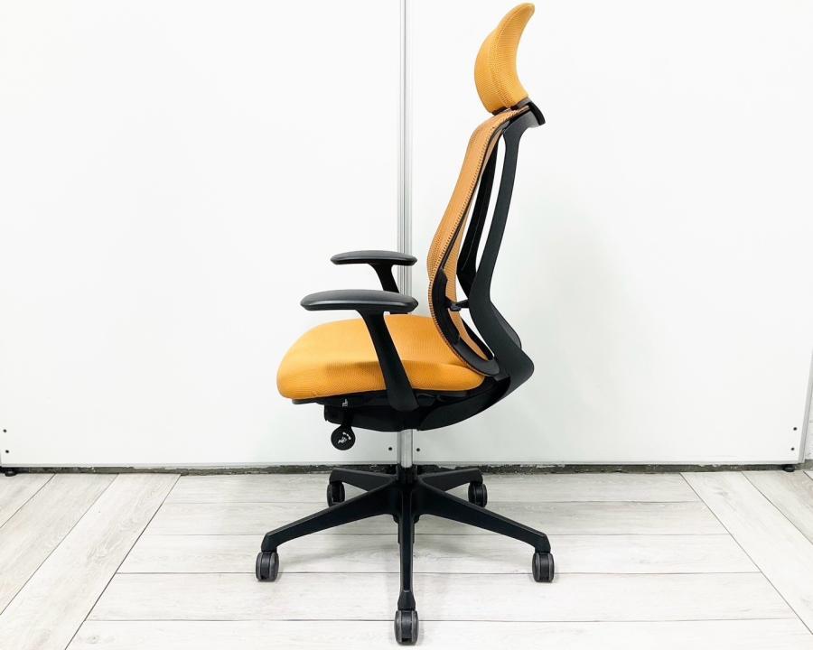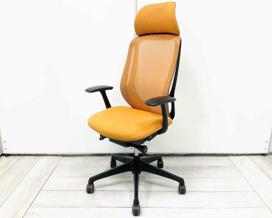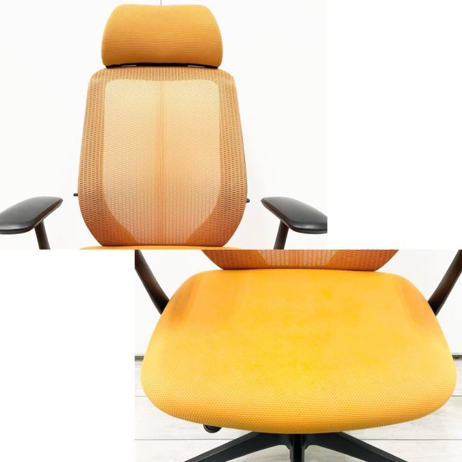 大人気チェアがヘッドレスト付きで入荷!固定アーム ■オカムラ/シルフィーメッシュ/オレンジ ブラックボディ 前傾機能付き- 立川・八王子店