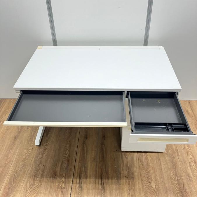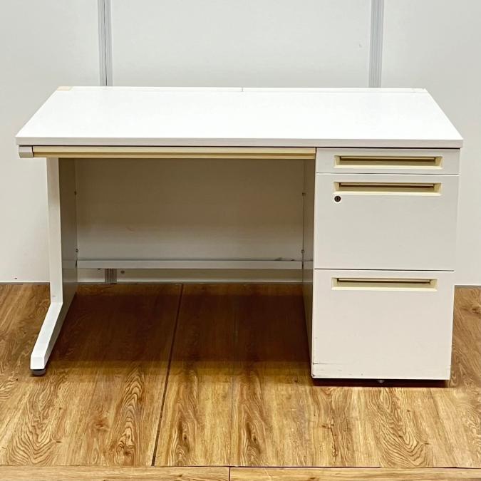 【訳あり品:目立つ日焼け・割れあり】オカムラ アドバンスシリーズ ホワイトカラー W1200サイズ 片袖机!!- 京都東寺店