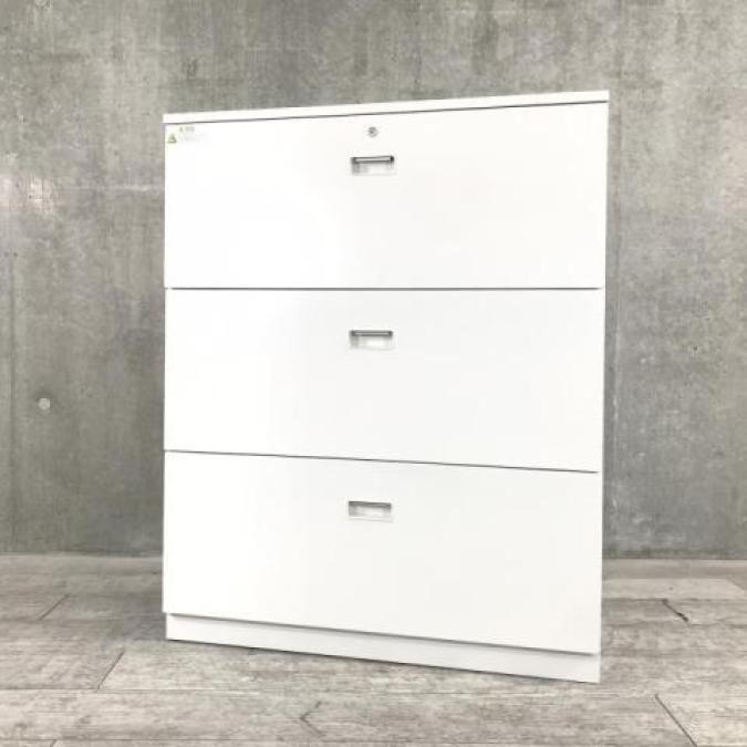 【A4ファイルも沢山収納可能!ホワイトカラーの人気シリーズ3段ラテラル書庫!】■イトーキ(ITOKI)製 シンラインシリーズ (THIN LINE) 3段ラテラル書庫 ローキャビネット ■シリンダー錠 ■ホワイト