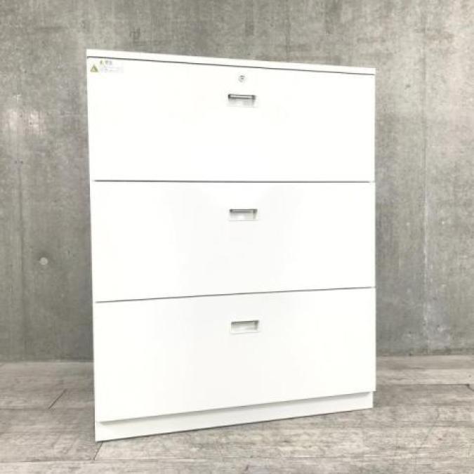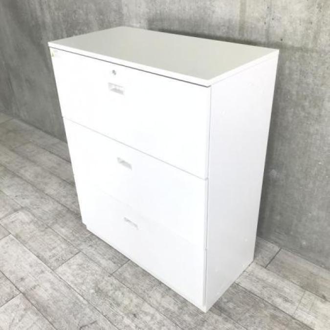 【A4ファイルも沢山収納可能!ホワイトカラーの人気シリーズ3段ラテラル書庫!】/オススメ(おすすめ) /人気商品【弊社使用欄:A01013834】3段ラテラル書庫/ローキャビネット/天板付き/ホワイト/シリンダー錠/ITOKI/THIN LINE■イトーキ/シンライン※取っ手部分日焼あり