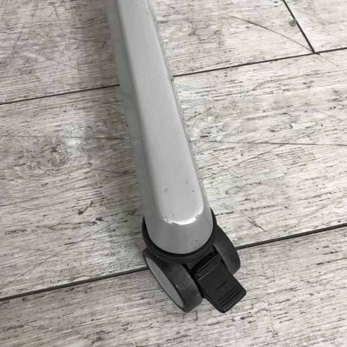 - 一部不具合あり天板歪み、アジャスター無し、キャスター使用不可ようなそのテーブルの本来の効用を果たすための機能以外の一部が使用不可な状態。(例、キャスターロッ ク機能使用不可、棚板無し等がある。)