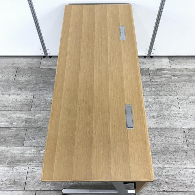 【在庫入替セール品!(本在庫限定価格)】【エレガスタの名に相応しい高級感!】■オカムラ製 サイドスタックテーブル W1500×D600mm 幕板パネル・配線孔付 ■オシャレな木目カラー!- 川崎店