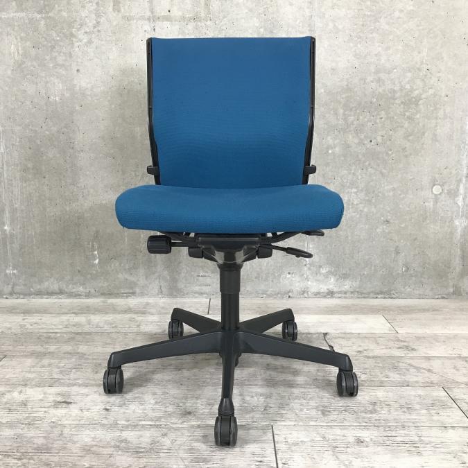 【関東倉庫在庫品】【コストパフォーマンスに優れたオススメチェア!】■オカムラ製 エスクード 肘無しローバックチェア ■ブルー 【弊社使用欄:A00981676】【ECBMC】
