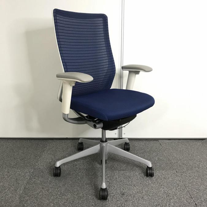 【大人気高級チェア入荷!】ブルー×ホワイトの爽やかなカラーリング! 広い座面でストレスなく作業を!【在庫入替セール品!】 ■オカムラ/コーラル/ミディアムブルー- 立川・八王子店
